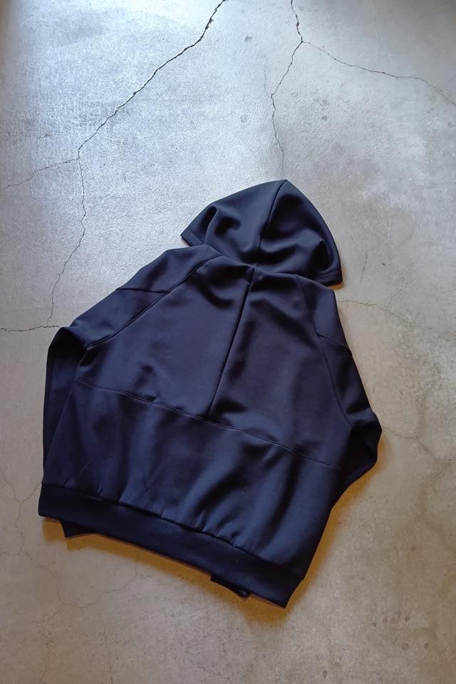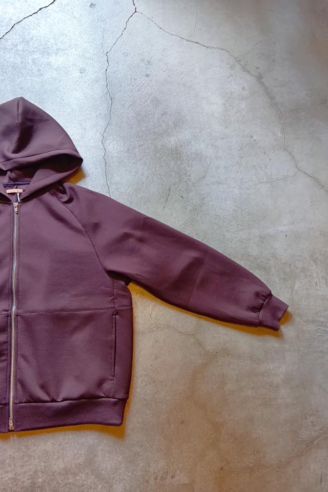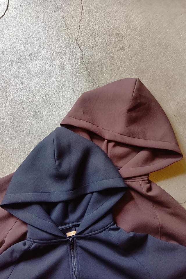 生地を使用したジップアップフーディー。