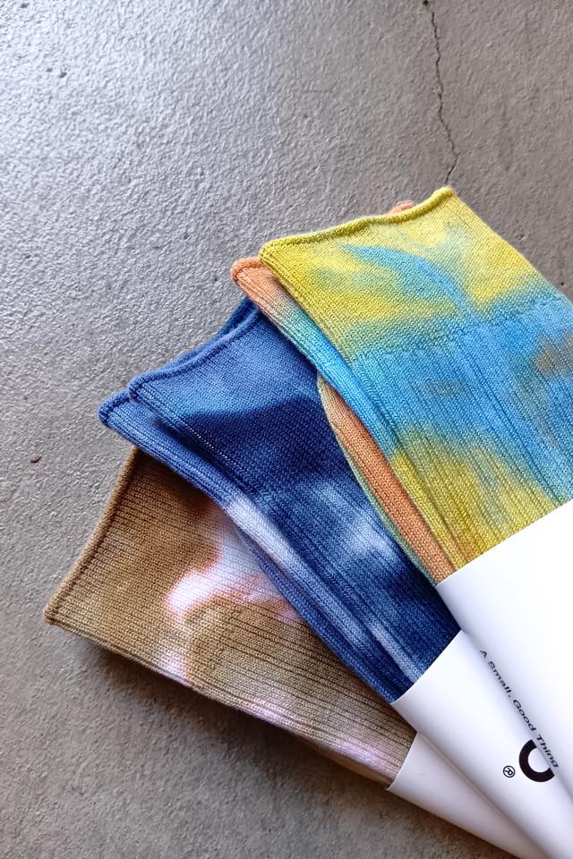 リブ編みソックスをタイダイ染めにしてます!